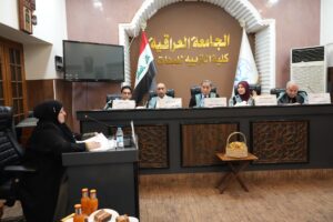 ناقشت كلية التربية للبنات في الجامعة العراقية رسالة ماجستير في قسم علوم القرآن والتربية الإسلامية، بعنوان: «واقع استعمال التقويم التربوي لمدرّسي مادة القرآن الكريم والتربية الإسلامية للمرحلة المتوسطة في ضوء معايير الجودة الشاملة»، وذلك بحضور عميد الكلية الأستاذ الدكتور هدى محمد صالح عبد الجبار.